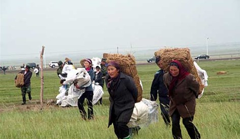 草袋在防沙固沙方面取得了比較卓越的成績,在實際使用中效果表現(xiàn)突出,為防沙固沙做出了貢獻。方法是在沙漠或沙化土地上,采用稻草袋裝沙堆疊稻草袋擋沙墻、構(gòu)筑稻草袋方格和稻草袋覆蓋沙體的方法,使沙體在風(fēng)的作用下不被吹拂和移動,同時又具有良好的保水作用,為栽培植物創(chuàng)造了成活及生長的必要條件,對土壤不會造成任何污染,符合環(huán)保要求。本發(fā)明具有良好的防沙固沙效果,可防止沙塵暴的發(fā)生,避免沙漠或沙塵暴對人類的威脅。