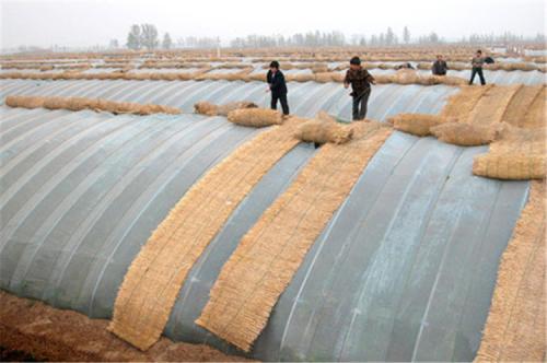 其次,大棚草簾早拉晚放。在一天當中,多在早上起風并逐漸增大,但是到下午風會逐漸減小,所以菜農可以提前拉棚。現(xiàn)在早上室外溫度最低也一般不低于0℃,且持續(xù)時間很短,太陽出來后溫度提升較快,拉棚后棚內溫度不會明顯下降,所以菜農可以將拉棚時間提前到早上7點 (以后隨著天氣轉暖,日照時間延長,拉棚時間應逐漸提前),這時一般風力較小,不會將草簾吹翻。到下午時,風力逐漸減小,菜農可將放棚時間推遲到5點以后。對于使用多年的舊草簾,為防止大風吹翻草簾,可以多家菜農聯(lián)合一起放棚,縮短放棚時間,降低草簾被風吹翻的幾率。