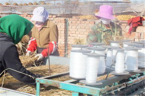 11月15日,位于原陽縣氾水鎮(zhèn)的建春編織品加工廠機器轟鳴,工人們正忙著用稻草加工草簾子。通過工人的操作,稻草成了賺錢的寶貝。