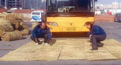 公交集團(tuán)燃料經(jīng)營分公司經(jīng)理黃杰說,為確保冰雪天氣里公交正常運(yùn)行,集團(tuán)每年舉行各類防滑演練,今年更是“返璞歸真”,從郊區(qū)市采購了一萬多條草墊子分發(fā)各路隊,這些草墊都是為防止車輪打滑而特制的。