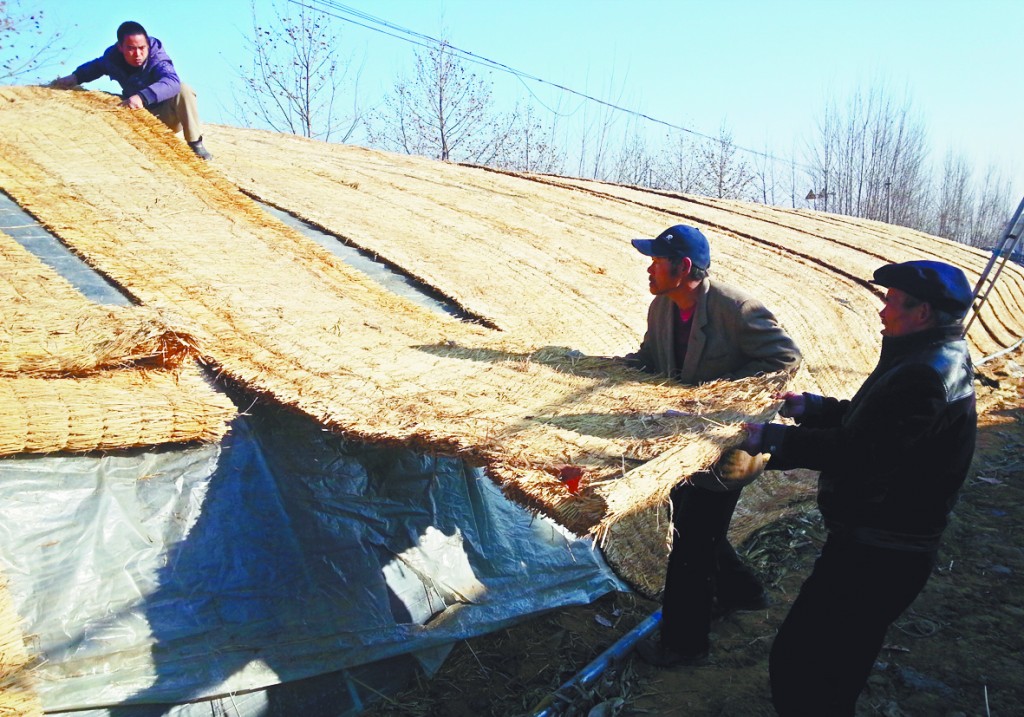 從外觀上看,孫先生大棚所覆蓋的草簾,長約12米寬有1米多。
