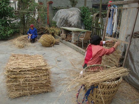 農閑季節(jié),全家一起搞草編