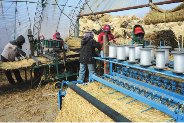 農(nóng)民們利用當?shù)刎S富的稻草資源紡織草簾子,向本地及外地的棚菜種植戶和葡萄種植專業(yè)戶大量供貨。
