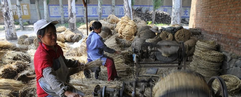 草繩,其實(shí)并不是真的是用“草”做的,而是用水稻桿做的。水稻種植在河南省原陽縣地區(qū)并不多見,且種植較少。據(jù)稻夫草編所知,原陽縣地區(qū)也就是在原武、太平鎮(zhèn)一帶有種植。所以在河南制作草繩的原料不是很常見,這為原料采購帶來了不小的麻煩。