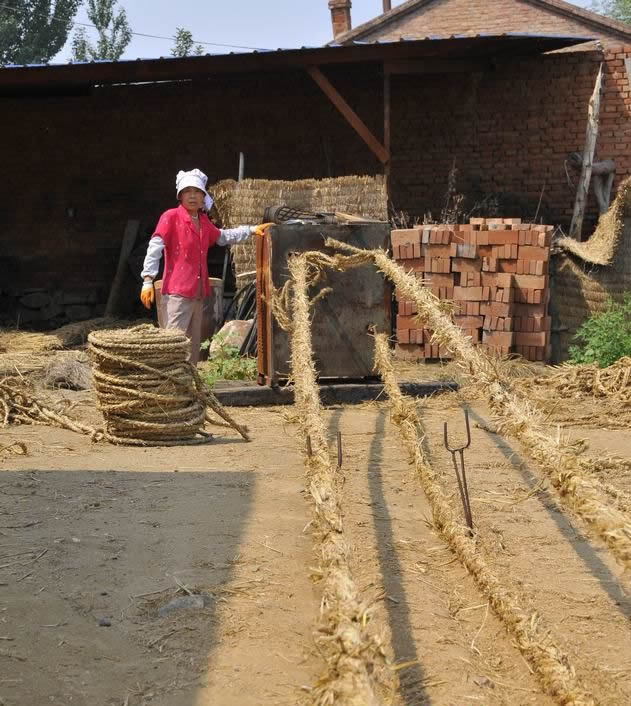 搓草繩,也算是一項(xiàng)技術(shù)活,盡管不是高科技,但確實(shí)有一定的技術(shù)含量,對不同粗細(xì)的繩子有不同的要求。現(xiàn)在搓草繩雖然已經(jīng)脫離了傳統(tǒng)的純手工操作,采取半機(jī)械化半手工的方法,但是其中也有一定的技巧,不是一般人幾天可以學(xué)會的。看似簡單,做起來卻不是那么容易的。
