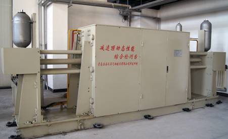 圖片3:減速頂動態(tài)性能綜合檢測臺。能進行鐵道車輛減速頂?shù)闹苿庸?、臨界速度、阻力功等參數(shù)的試驗。主要參數(shù):測試速度0~8.3m/s連續(xù)可調(diào),垂直加載0~5t可調(diào),采用車輪滾壓直線沖擊方式。