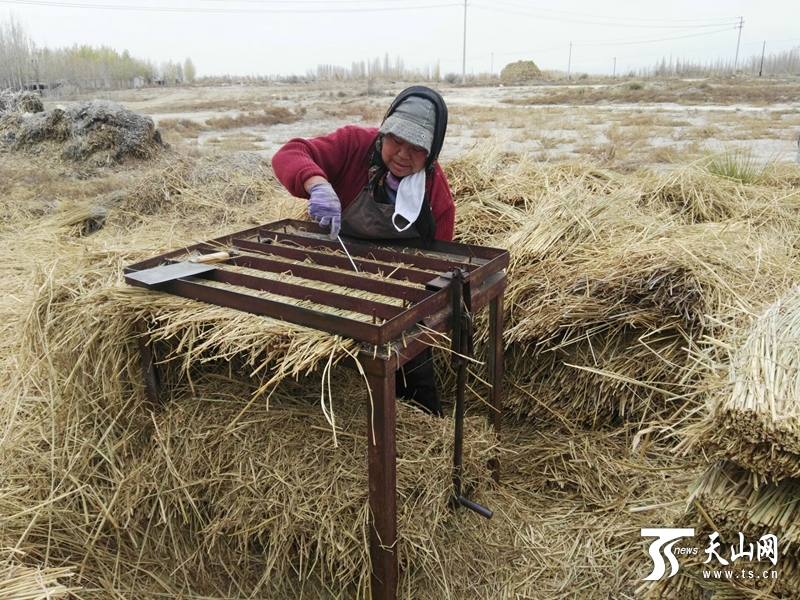合作社將稻草加工成草苫子、草簾,不僅在博州境內(nèi)的阿拉山口等地銷售火熱,而且還賣到了烏魯木齊、石河子等地,村民靠稻草編織找到了一條走向富裕的新路徑。