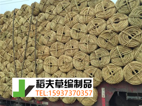 一次偶然的機(jī)會(huì),稻夫草繩制品廠高大姐碰到一位收風(fēng)景樹的老板,與之閑聊,知道園林綠化越來越吃香,移栽的樹木,因怕干燥、曬裂及凍傷,需要選用草繩進(jìn)行包裹。而且還表示,只要有草繩貨源就聯(lián)系他。稻夫草繩制品廠高大姐立即和老伴商量后,就自編起草繩,一餅可以賣出9元錢,自家的稻草可搓出500余餅的草繩,可增收四五千元。隨后他還購置了一臺(tái)搓草繩機(jī),那家伙干起活來快,一季的稻草一個(gè)月就搓完,主要還是原料短缺,不然一年一兩萬元好掙。