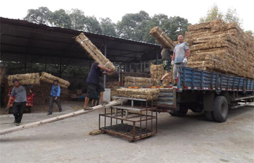 稻夫草支墊為了解決草支墊硬度低、易掉渣、易燃的問題,提供了一種貨物運(yùn)輸中能夠用于各種金屬型材的支撐及固定的草支墊。