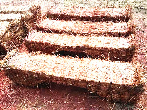 草支墊或草掩擋減震和固定效果好、原料廉價