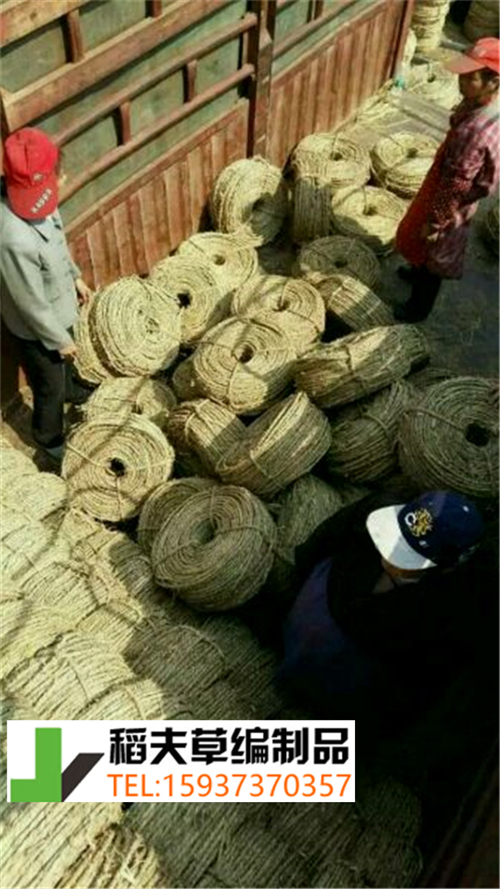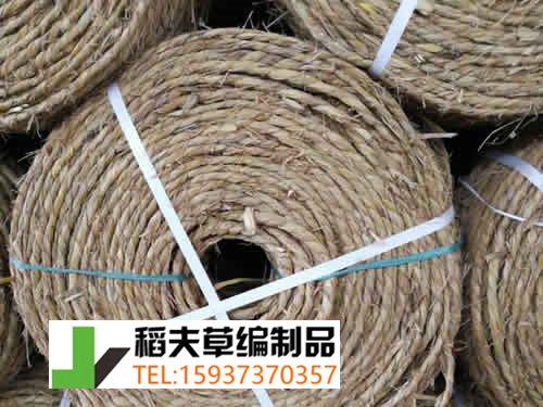 搓草繩,首先要把曬干的齊稻草刷齊,去掉外包的枯葉,用其莖,再把刷好的齊稻草分成碗口粗大小,一把一把的,放在石頭上面或臺(tái)階上,用木頭榔頭錘打,直至稻草柔軟(錘熟)才好搓繩。搓繩時(shí),用8根左右的稻草分兩邊用手搓滾起頭,約50厘米長時(shí),把起頭的位置坐在自己的屁股下,兩手搓,邊搓邊添加稻草。有經(jīng)驗(yàn)的老村民搓出來的草繩粗細(xì)均勻,股縫輪廓清晰密度好,經(jīng)久耐用。