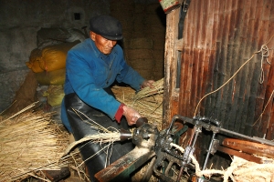 家住丁伙鎮(zhèn)高橋村東套組的韓永 奇今年83歲,他有一手編織草繩的手藝,從30年前開(kāi)始,一直在家和老伴從事草繩編織,一年要用掉稻草近2萬(wàn)斤。