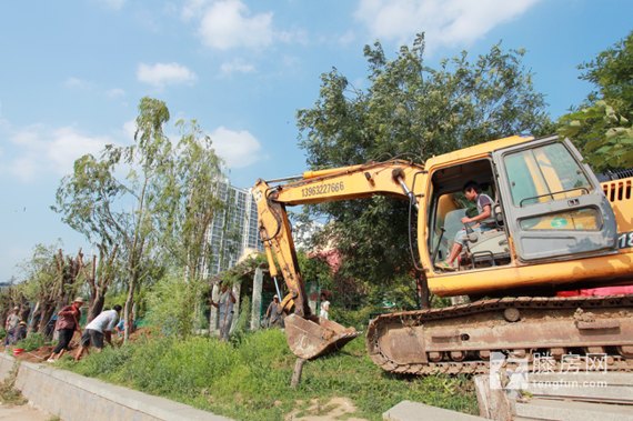 同時(shí),為了方便移植,樹枝部分已經(jīng)被修剪掉,挖掘機(jī)在樹木根部挖出一個(gè)大坑,工人把土和部分樹根用草繩包裹起來方便把樹木運(yùn)走并保證移植成活,苗木移植完畢后,下一步將開始對損壞的棧道進(jìn)行拆除。