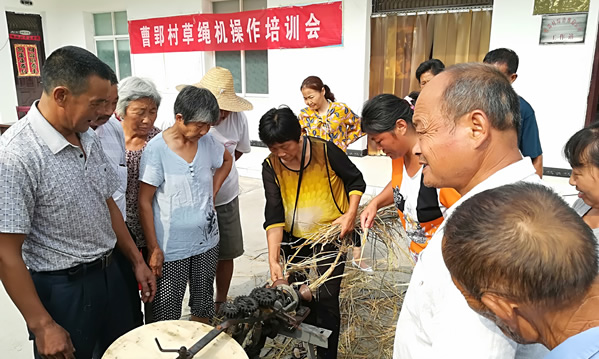 培訓(xùn)現(xiàn)場中,通過2016年依靠草繩加工售賣已脫貧戶的現(xiàn)場說法,使貧困戶意識到草繩機項目切實可行,收益可觀,增強了脫貧致富的信心?,F(xiàn)場教學(xué)中,貧困戶踴躍嘗試,了解其操作簡單,方便易學(xué),男女老少皆宜。