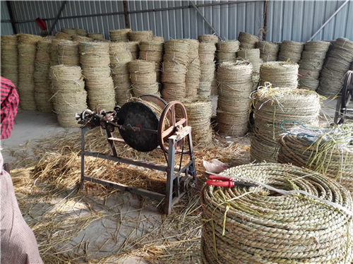 從苗木碼頭出來(lái),記者來(lái)到三泉社區(qū),看到不少售賣草繩的店面。原來(lái),苗木售賣要經(jīng)過(guò)長(zhǎng)途運(yùn)輸,為了增加成活率,苗木連根帶土采挖出來(lái)后,便迅速用草繩盤(pán)起來(lái)。草繩可以隨苗木一起栽種,變成肥料促進(jìn)苗木生長(zhǎng),一舉兩得。一位店主告訴記者,當(dāng)?shù)夭簧倮先硕加写瓴堇K的手藝,草繩售賣按件計(jì)價(jià),一捆草繩可賣50—60元,也算是掙點(diǎn)零花錢。