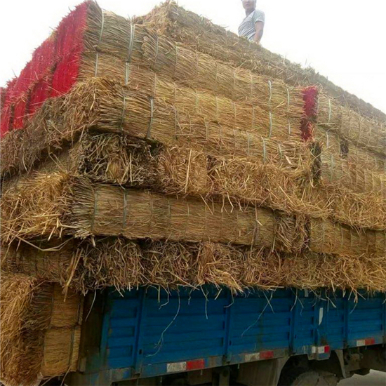 選用高質(zhì)量干燥稻草機(jī)械設(shè)備壓接制作綁扎成形,生產(chǎn)加工凹型草支墊應(yīng)按加草工藝要求逐個(gè)平均加草,纖維理清,稻草含水量不得超過16%,凹型草支墊部綁扎細(xì)鐵絲距端部不小于50毫米,細(xì)鐵絲余尾彎折壓進(jìn)草支墊側(cè)邊內(nèi)。凹型草支墊與厚鋼板的摩擦阻力不小于0.42.經(jīng)增壓緊實(shí)后的草莖用鋼絲箍定形。