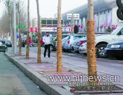 8日小編看到,整條黃河路上每隔一段就能看見纏著草繩的小樹,視覺上原本整齊的行道樹變得很不規(guī)整。在華山北路、沿河路等街路,也均可看到纏著草繩的楊樹。走訪中小編發(fā)現,只有南崗區(qū)的街路行道樹上纏著草繩,粗略計算,這樣的樹約有幾百棵,以楊樹居多。“只纏了這么一段,像穿件馬甲一樣,其余部分不還是露在外面嗎?再說,這些本土樹種還需保暖嗎?太不美觀了。”家住黃河路的張經理表示。對此,南崗區(qū)園林局有關人員表示,扎草繩的樹木都是新補植的。“此舉在給樹木保暖的同時也方便管理,一打眼兒就可以看清哪些樹木是新補植的。”據了解,該局今年計劃在黃河路、沿河路及花園街等100多條街路上補植3000余棵新樹,目前已經有1000多棵樹木穿上了“棉衣”。